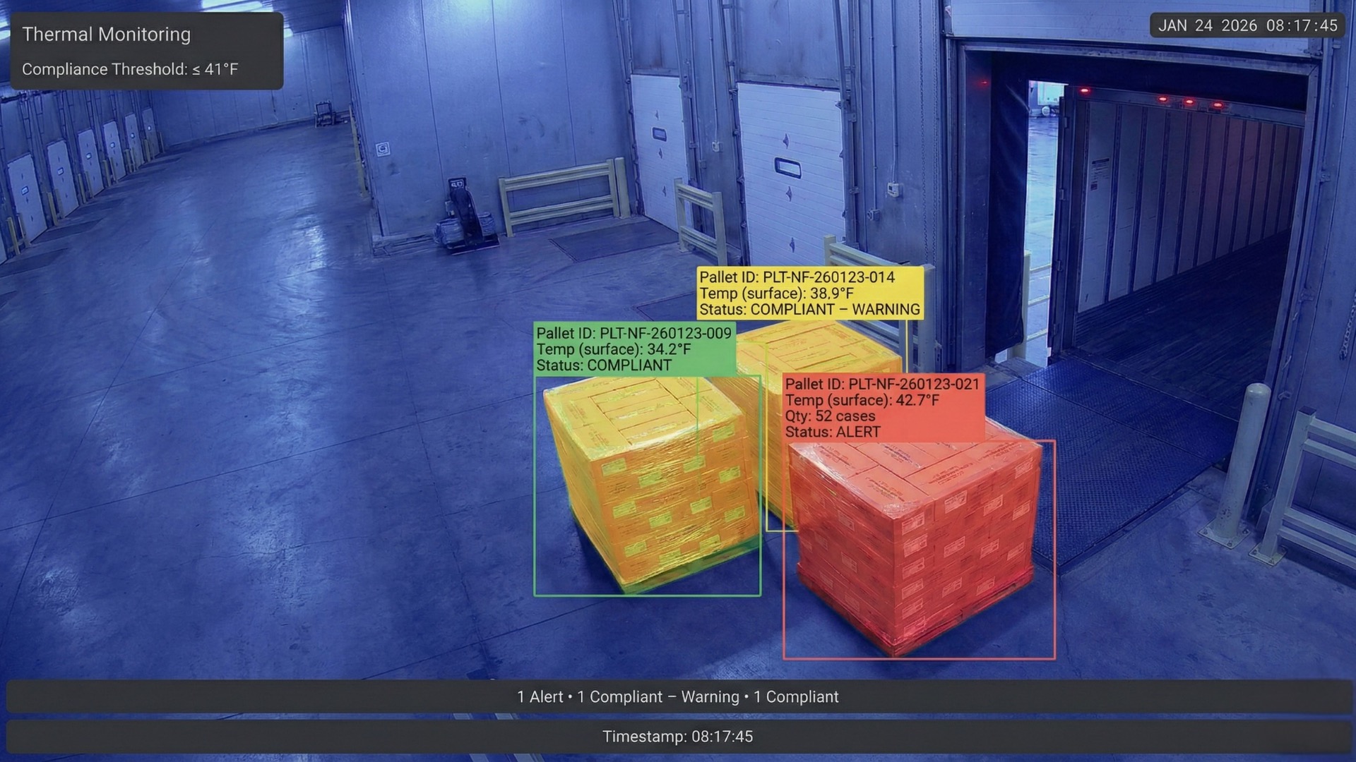 Nova Control verifies reefer temperature, fuel levels, trailer identity, and seal integrity at the gate and at the dock.